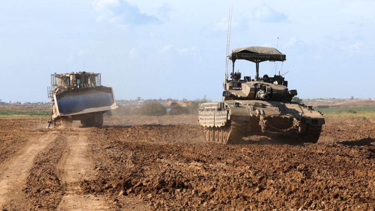 الجرافات والجنود الإسرائيليون وهم يقومون بتسوية الأراضي لإفساح المجال أمام المنطقة العازلة في شمال قطاع غزة