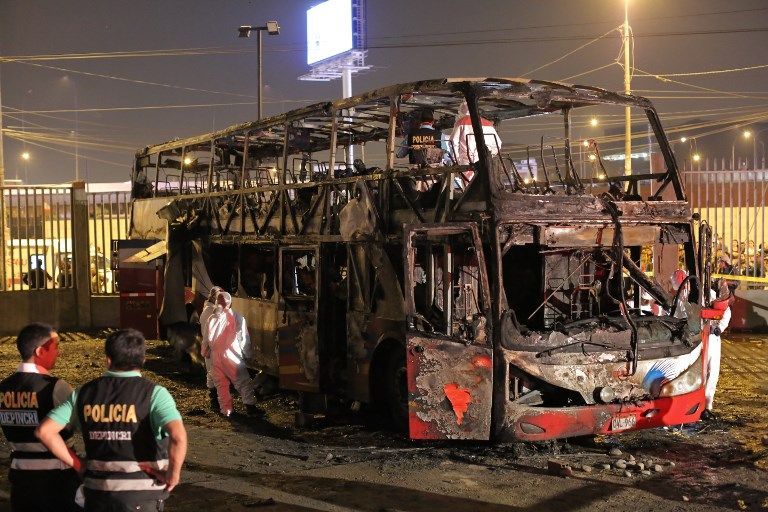 واندلع الحريق حين كانت الحافلة على وشك الانطلاق من محطة فيوري في شمال العاصمة ليما إلى مدينة تشيكلايو في شمال البلاد.