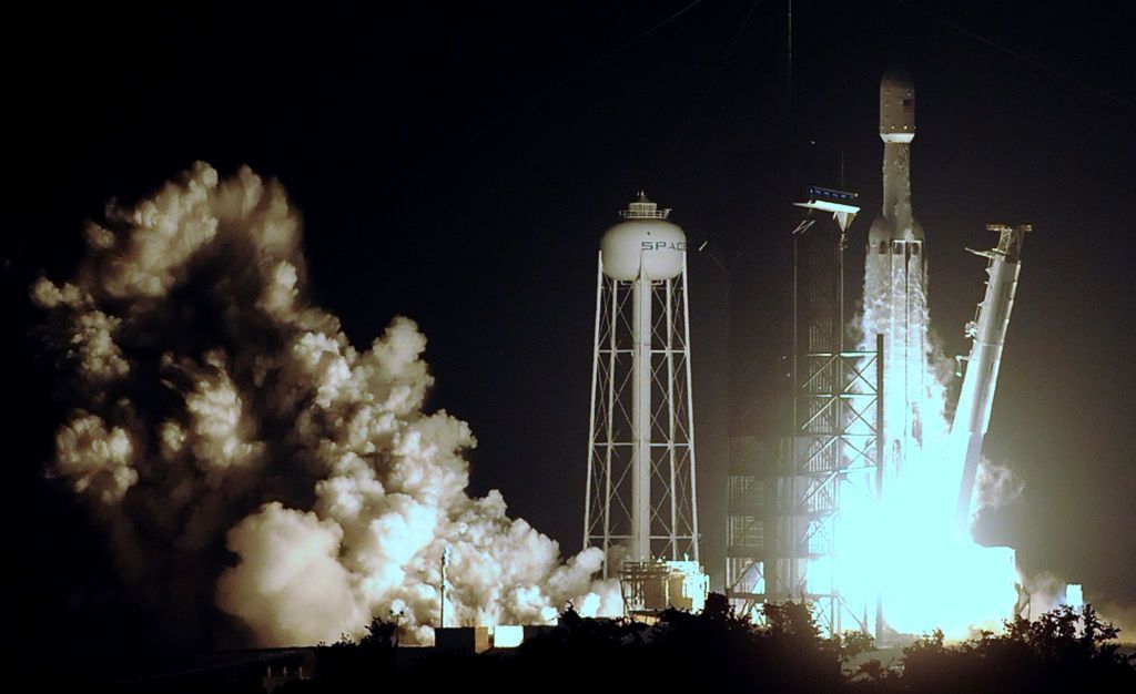 أطلقت شركة سبيس إكس صاروخ فالكون هيفي من مركز كنيدي للفضاء في فلوريدا حاملا 24 قمرا صناعيا تجريبيا.