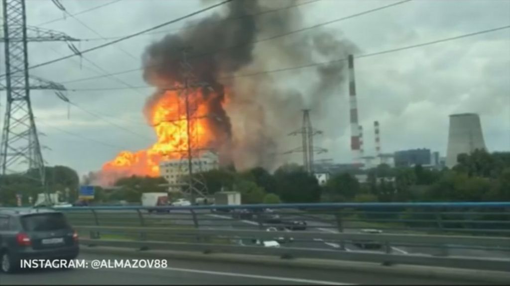 وارتفعت ألسنة اللهب الى أكثر من خمسين متراً، بحسب مشاهد نقلها التلفزيون الروسي، فيما تشير المعلومات الأولية إلى أن الحريق قد يكون ناجماً عن انفجار، وفقاً لوسائل إعلام روسية.