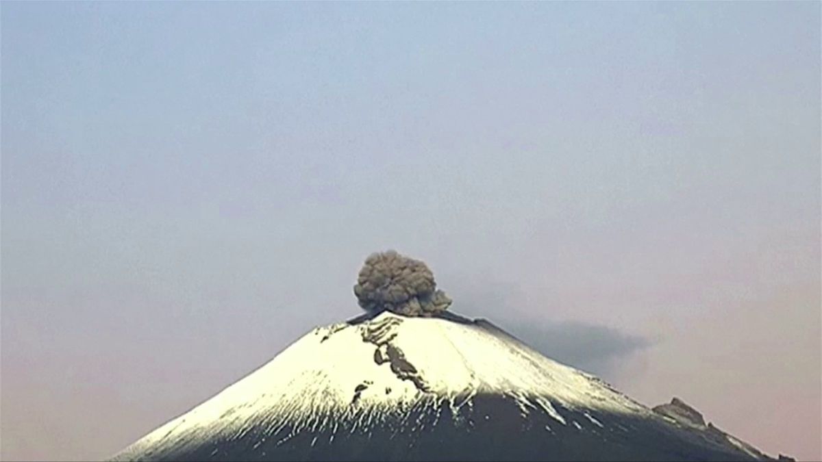 بركان بوبوكاتبتبيل يطلق رماده وأبخرته وغازاته في سماء العاصمة المكسيكية مكسيكو.