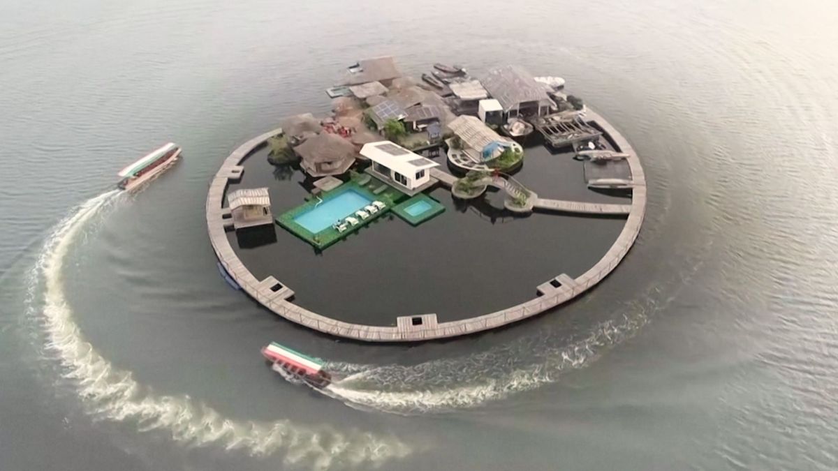 حيث قام رجل الأعمال الفرنسي ايريك بيكر ببناء جزيرة من الزجاجات البلاستيكية، تم بناؤها بنحو ما يقرب من 700 ألف زجاجة بلاستيكية و قام بجمعهم من النفايات.
