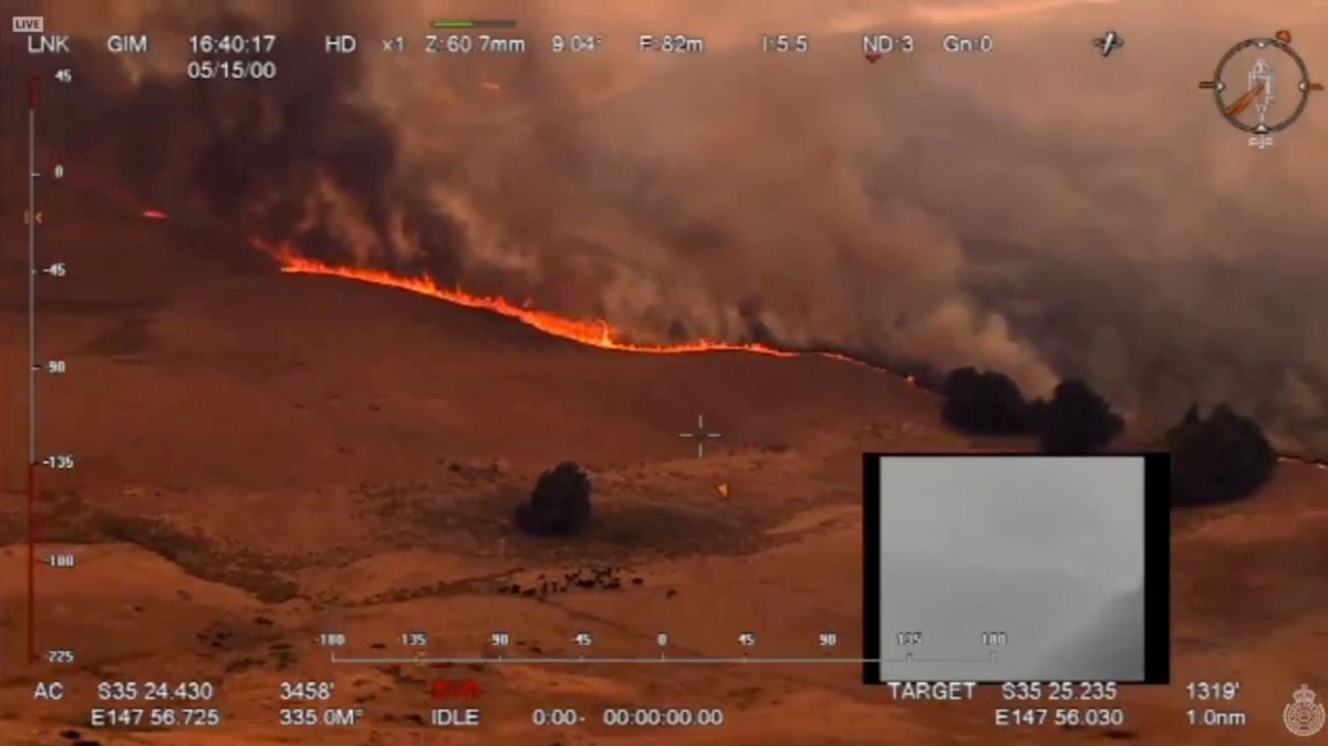 وقال آندرو كريسب مفوض إدارة الطوارئ في الولاية إن ”أعمدة من النيران“ تستعر في الجو وتشكل ظواهر طقس خطيرة.