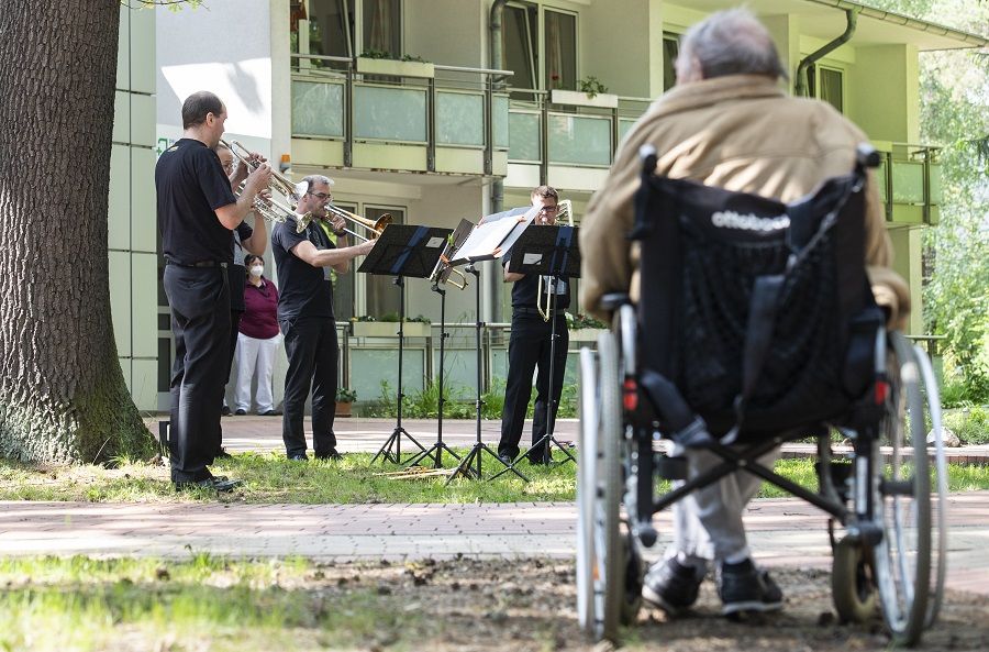 رغم حرمانهم من التدريبات والعروض بسبب جائحة كوفيد-19، يقدم موسيقيو دويتشه أوبرا في برلين سلسلة من الحفلات الموسيقية المجانية في ساحات دور رعاية المسنين . وهذا يمنحهم فرصة للترفيه على كبار السن الذين نادراً ما يتوفر لهم الحظ للخروج .