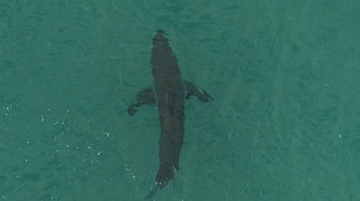 Live aerial image of a shark in waters off Kingscliff in northern NSW after a 50-year-old man died after being bitten by a shark while surfing on Sunday. @nswdpi detected a bull shark in the waters on Friday evening. (Pic ABC 24). @GuardianAus story here: https://t.co/kuh4NhMEN4 pic.twitter.com/mT1ZmPYQwk