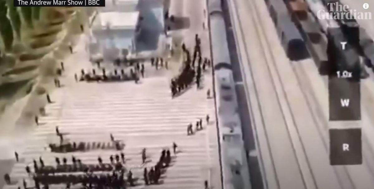 زعم سفير الصين لدى المملكة المتحدة على الهواء مباشرةً ان اللقطات التي تم عرضها وتُظهِر المسلمين الإيغور حليقي الرؤوس ومقيّدين ومعصوبي الأعين أثناء اقتيادهم إلى القطارات، ان هذه كانت عملية نقل ما وصفهم بسجناء ، حسب تقرير موقع Business Insider الأمريكي.