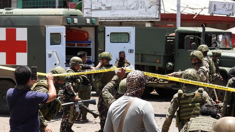 وأضاف أن جندياً كان يحاول القبض عليها عندما فجرّت نفسها، مرجحا بأن تكون جماعة أبو سياف خلف الهجوم المزدوج.