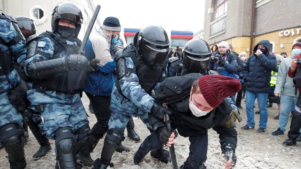 وأوقفت الشرطة الروسية أكثر من 4800 شخص الأحد وأغلقت وسط عدة مدن بما في ذلك العاصمة، فيما تشهد البلاد تظاهرات جديدة للمطالبة بالإفراج عن نافالني.