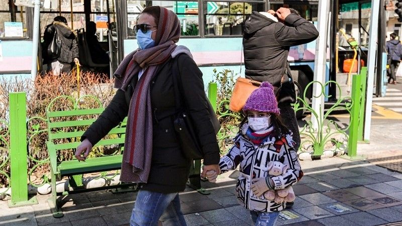 إيرانيون يرتدون كمامات وسط جائحة COVID-19 ، يسيرون في أحد شوارع السوق في العاصمة طهران/ أ ف ب