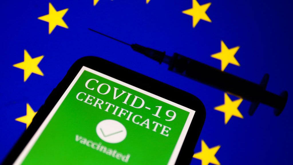 تظهر وثيقة الاتحاد الأوروبي – رمز الاستجابة السريعة المتاح على الهواتف الذكية أو على الورق – ما إذا كان حاملها قد تم تطعيمه بأحد اللقاحات المعتمدة من الاتحاد الأوروبي ( BioNTech / Pfizer أو AstraZeneca أو Moderna أو Johnson & Johnson) ، أو ما إذا كان قد تعافى من عدوى أو تم اختباره مؤخرًا بشكل سلبي.