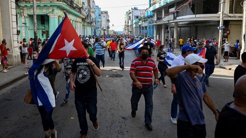 Chanting 'freedom' and calling for President Miguel Diaz-Canel to step down, thousands of Cubans joined street protests from Havana to Santiago in the biggest anti-government demonstrations on the Communist-run island in decades https://t.co/zdokWqjHN3 pic.twitter.com/Q00uLgQu4m
