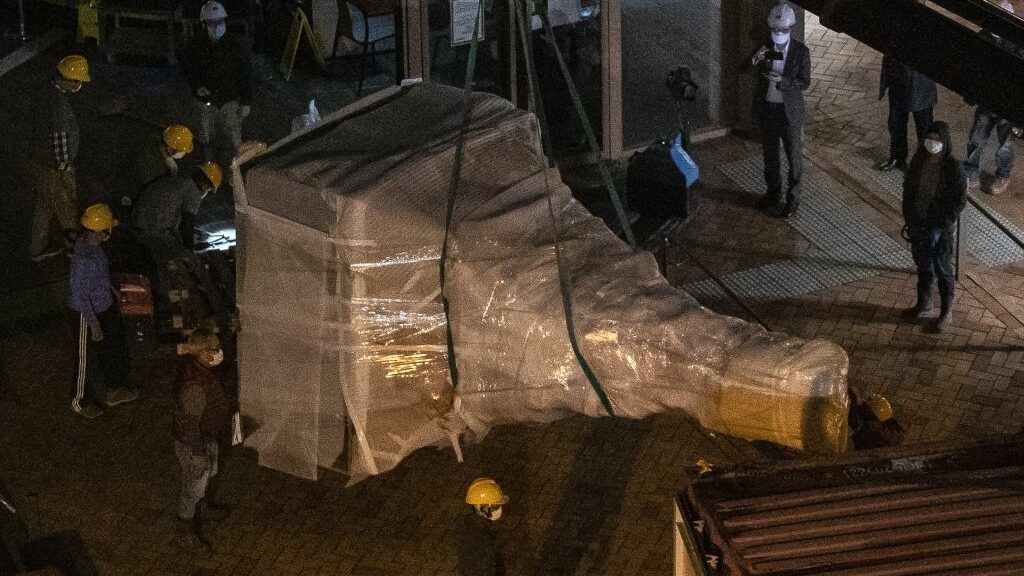 تحت جنح الظلام، أقدمت السلطات في هونغ كونغ على إزالة نصب تكريمي للقتلى الذين سقطوا في ساحة تيان انمين، من أعرق جامعة في الإقليم الذي يتعرض لحملة قمع مستمرة من بكين.