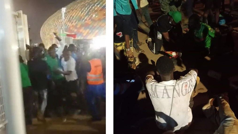 وحاول حشد من المشجعين دخول ملعب أولمبي في العاصمة ياوندي لمشاهدة المباراة بين منتخبي الكاميرون وجزر القمر التي انتهت بفوز الأولى بهدفين مقابل هدف واحد.