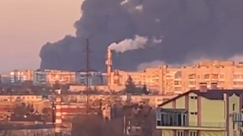 سحب من الدخان تغطي منطقة مطار لفيف بأوكرانيا بعد استهدافه من روسيا