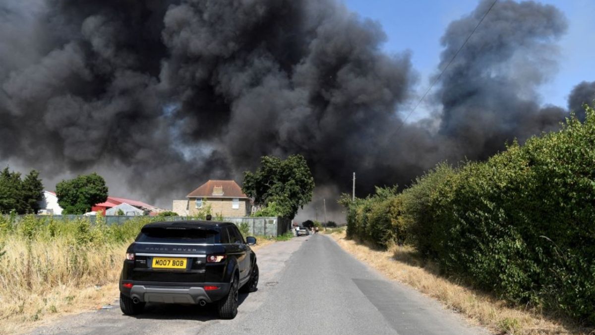 وأظهرت مقاطع فيديو وصور، الحريق في دارتفورد، وتصاعد أعمدة ضخمة من الدخان في الهواء.