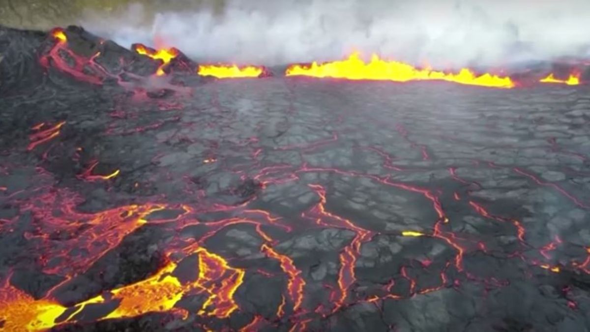 - تنبعث حمم ودخان من شق في الأرض على جانب جبل فاغرادالسفيال.