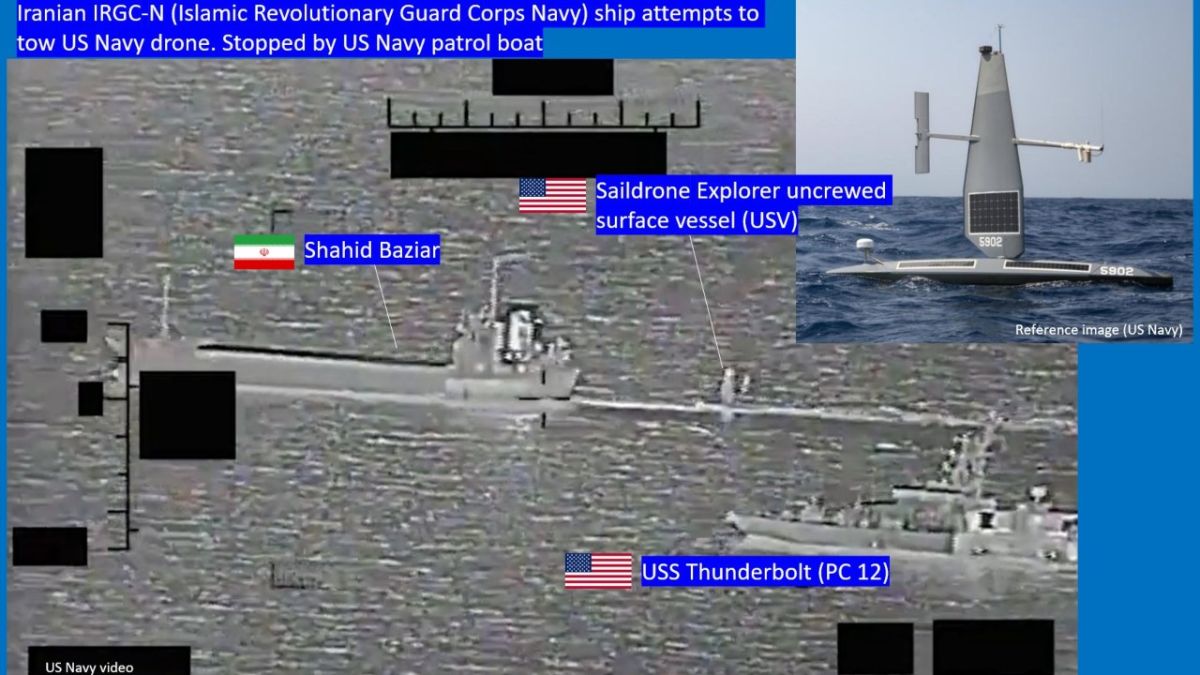 صرّح مسؤول في قيادة الأسطول الأمريكي الخامس أن البحرية الأمريكية اعترضت سفينة حربية إيرانية، احتجزت واعتقلت سفينتين أمريكيتين بدون طاقم يديرهما الأسطول الخامس في البحر الأحمر، في الأول من سبتمبر، بعد يومين من فشل بحرية الحرس الثوري الإيراني من الاستيلاء على سفينة مماثلة في مياه الخليج العربي.