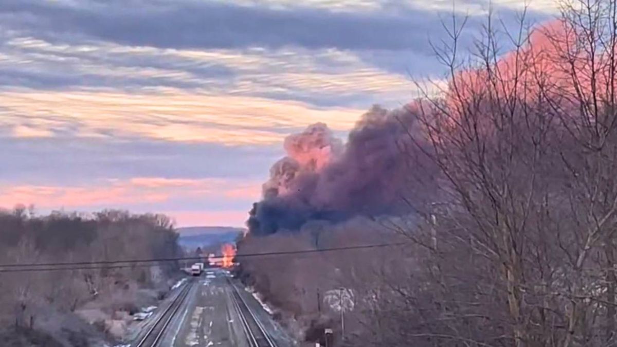 Smoke still billowing from train derailment in East Palestine, Ohio. Train cars burning and explosions can be heard. Authorities still aren’t sure what chemicals are burning. Live report at 9 am on Channel 11 News with @AlyssaRaymond #wpxi pic.twitter.com/pNI4Sqtfxe
