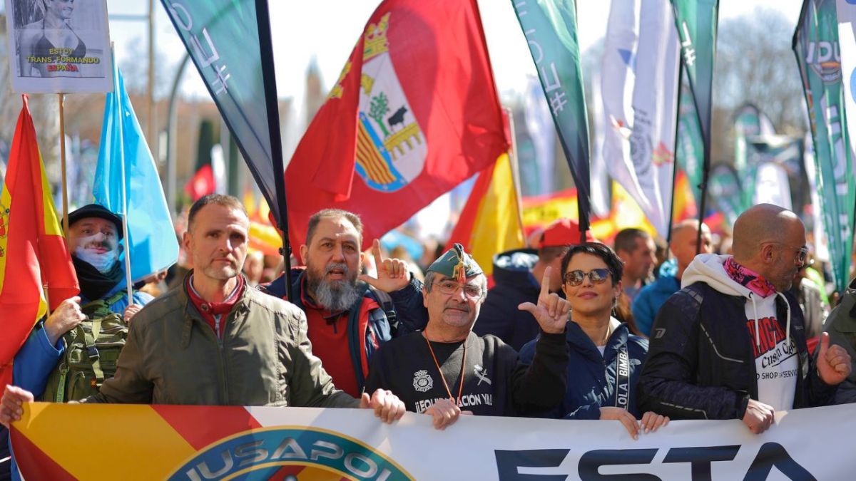 وخلف لافتة: “هذا القانون يعرضنا جميعًا للخطر” سار النقابيون بحضور قادة الحزب الشعبي (يمين) أكبر أحزاب المعارضة، وحزب فوكس اليميني المتطرف.