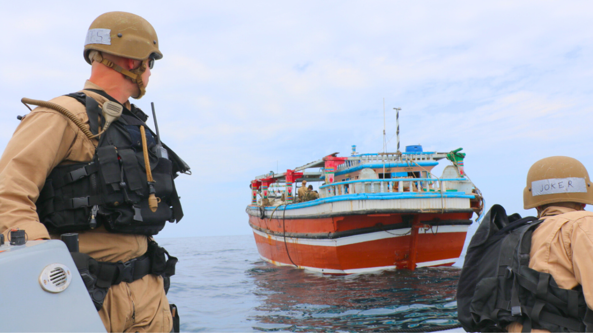 وتقوم فرقة العمل المشتركة 150 بعمليات الأمن البحري ومكافحة الإرهاب في خليج عمان والمحيط الهندي لمكافحة أنشطة المنظمات الإجرامية والإرهابية غير المشروعة، بما في ذلك نقل الأفراد والأسلحة والمخدرات.