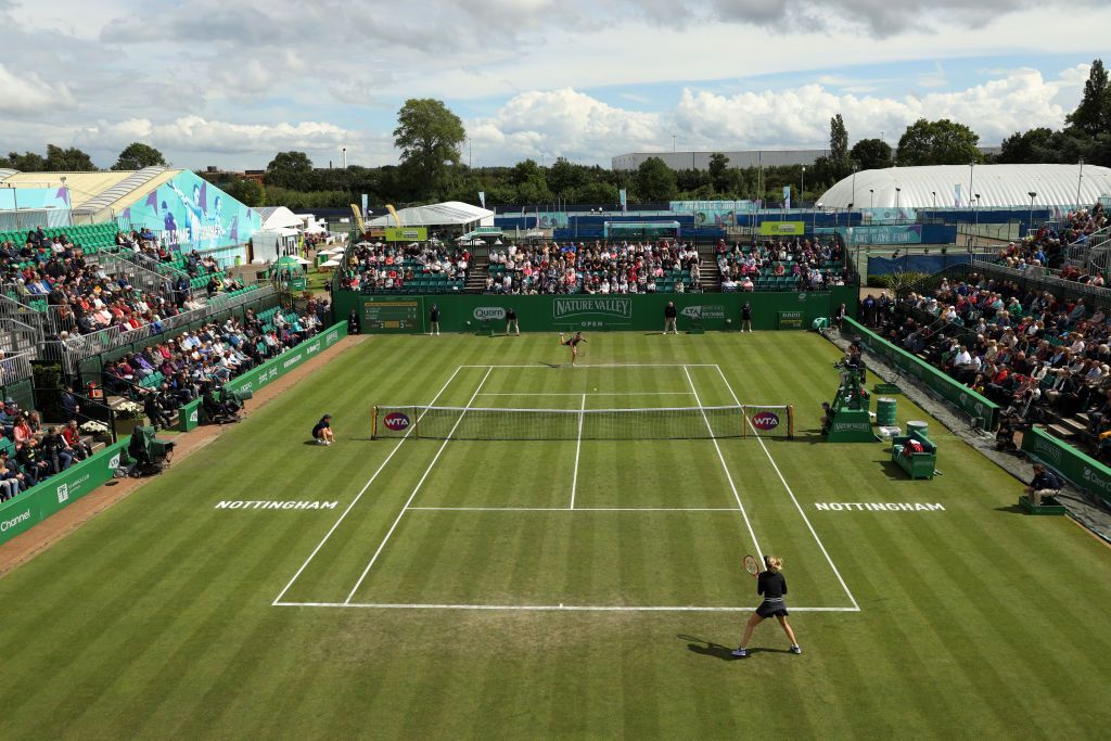 NOTTINGHAM, ENGLAND – JUNE 16: Caroline Garcia of France in action during the Womens Singles Final on day 7 of the Nature Valley Open at Nottingham Tennis Centre on June 16, 2019 in Nottingham, United Kingdom. (Photo by Paul Harding/Getty Images for LTA)