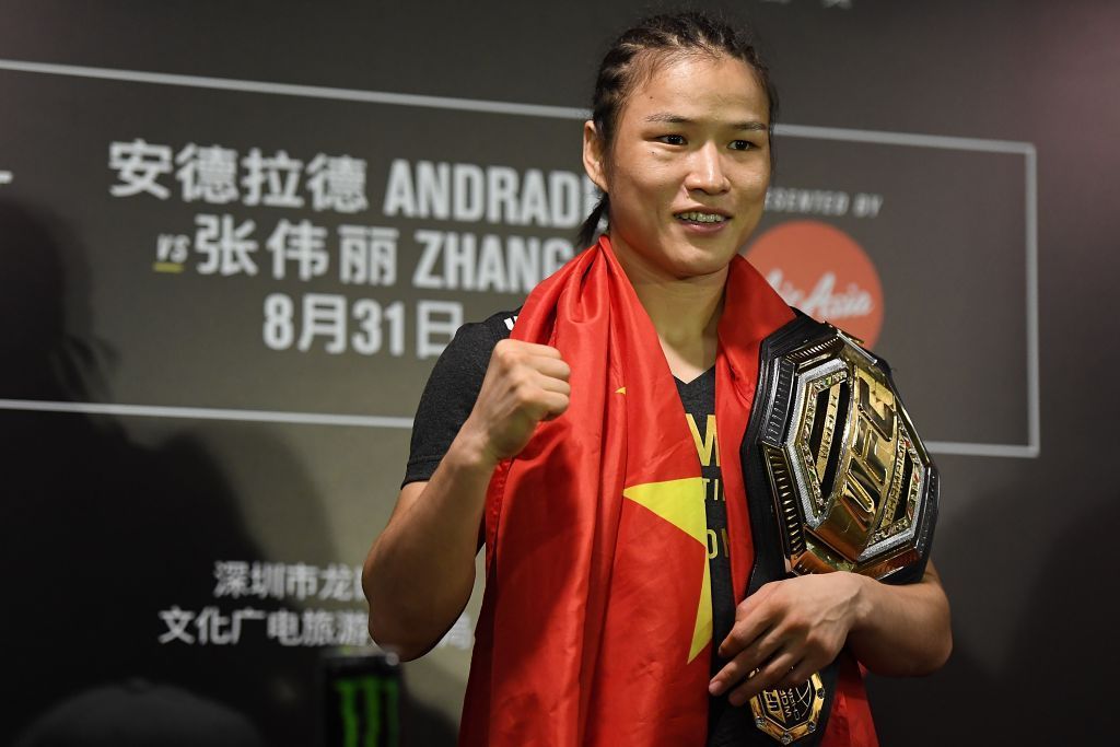 لأول مرة في التاريخ اللاعبة “تشانغ ويلي” بطلة الفنون القتالية من الصين، بعد فوزها في 31 أغسطس 2019 على منافستها البرازيلية “جيسيكا أندرادي” بالضربة القاضية في الثانية الـ42 من الجولة الأولى في بطولة شينزين الجامعية في مدينة شنتشن بمقاطعة قوانغدونغ جنوب الصين.
