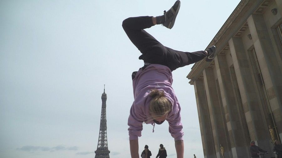جوهان تونوار بدأ بممارسة رياضة الباركور قبل 12 عاماً وها هو يعود لممارسة الجري الحر في شوارع باريس و يؤدي عروضه البهلوانية أمام برج ايفل , بعد شهرين من الإغلاق بسبب فيروس كورونا.