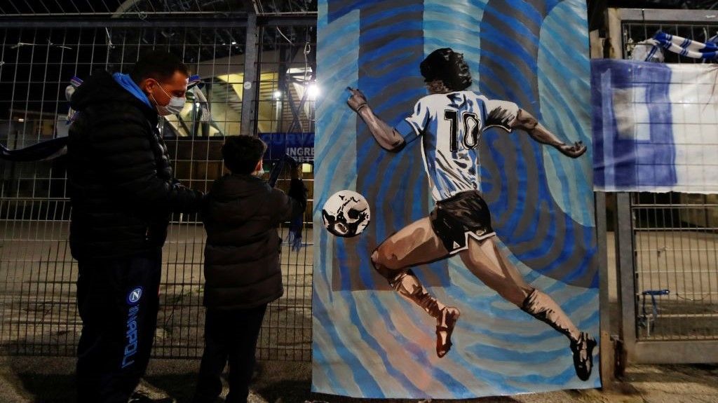 اجتمع عدد من الناس في نابولي حدادًا على وفاة أسطورة كرة القدم الأرجنتينية دييغو مارادونا ، الذي يُنظر إليه على نطاق واسع على أنه أحد أعظم لاعبي اللعبة على الإطلاق وفي نابولي يُنظر إليه على أنه بطل للمدينة، بعد أن توفي بنوبة قلبية يوم الأربعاء (25 نوفمبر).