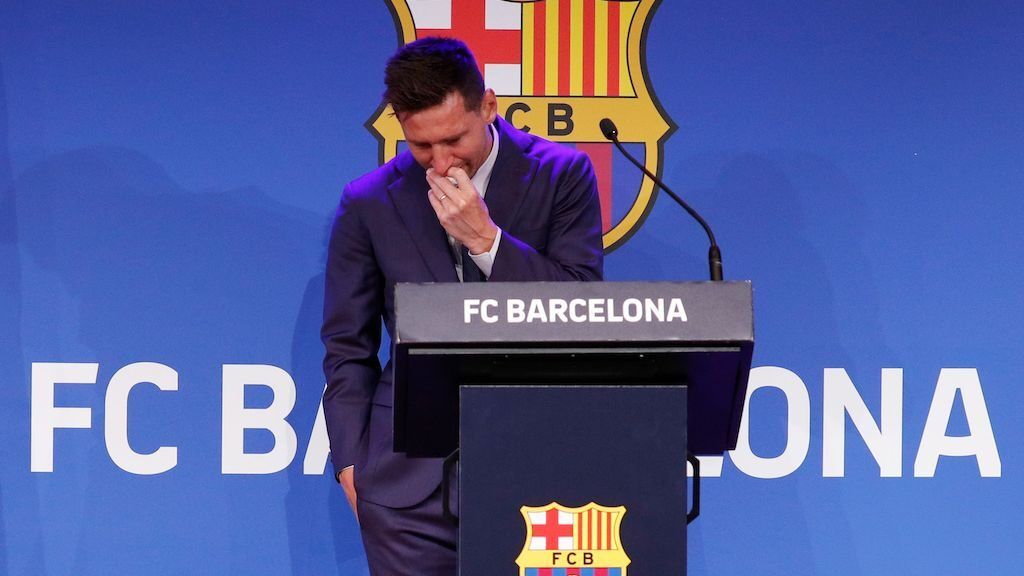 ليو ودّع برشلونة باكيًا. المصدر: AFP