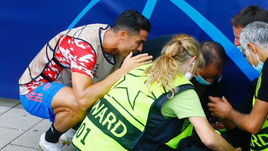 وأثناء العمليات الإحمائية للمباراة، أطلق ”الدون“ تسديدة هائلة أصابت إحدى العاملات بالملعب في رأسها لتسقط أرضًا، بينما هرعت الطواقم الطبية لإسعافها، وفقًا لما نقلته صحيفة ”ديلي ميل“ البريطانية.