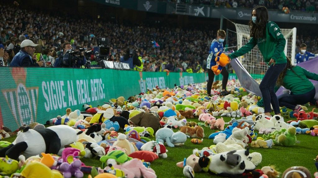 جماهير ريال بيتيس تمطر أرضية الملعب بألعاب الأطفال في لفتة إنسانية