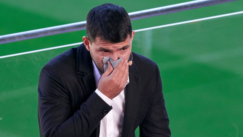 وانهمر أغويرو في نوبة بكاء أمام الكاميرات، وقال في كلمته بالمؤتمر الصحفي: ”أنا هنا في هذا المؤتمر لإبلاغكم بأنني قررت التوقف عن ممارسة كرة القدم، إنها لحظة صعبة للغاية، لكني ما زلت سعيدًا جدًا بالقرار الذي اتخذته، ذلك من أجل صحتي“.