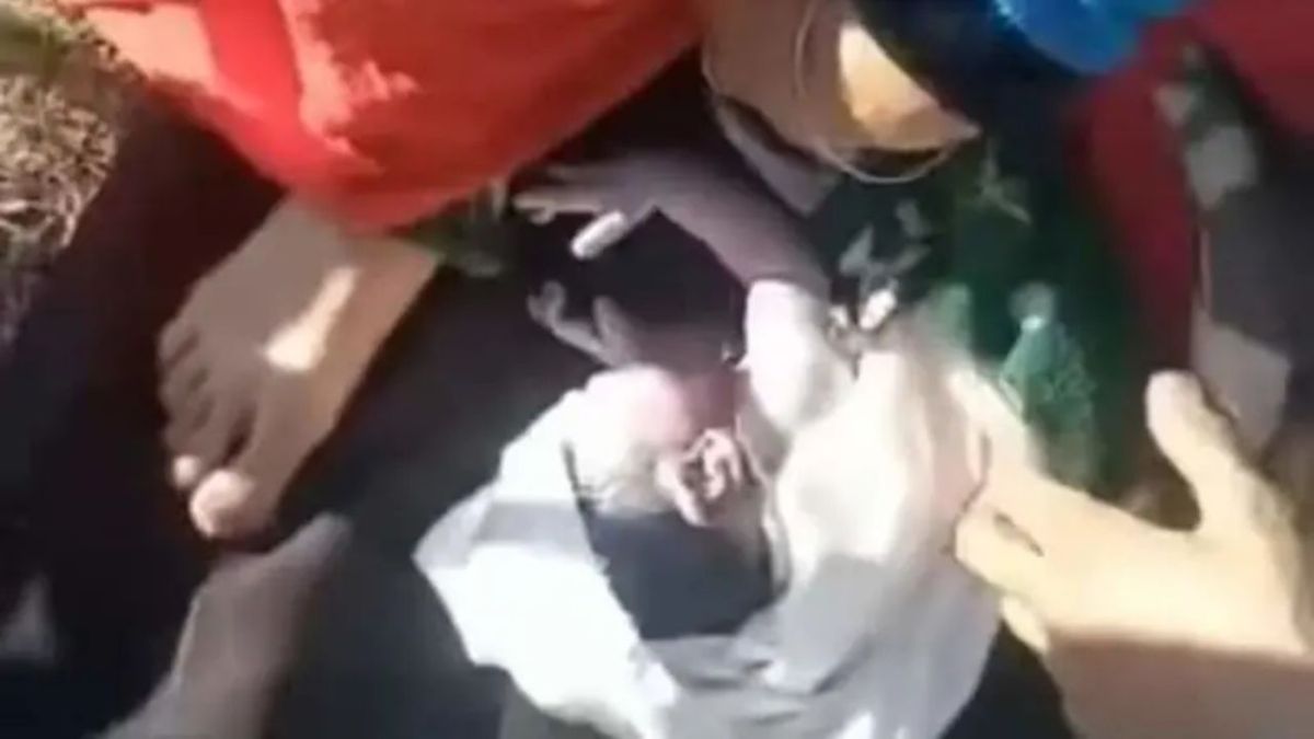 المخاض فاجأ المرأة فور خروجها، ودفعها إلى وضع مولودها بحديقة المستشفى.