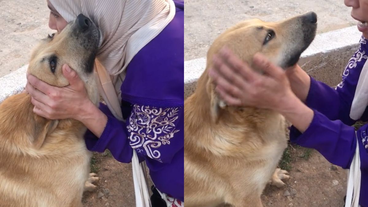 كلب شوارع يبكي في حضن سيدة مغربية